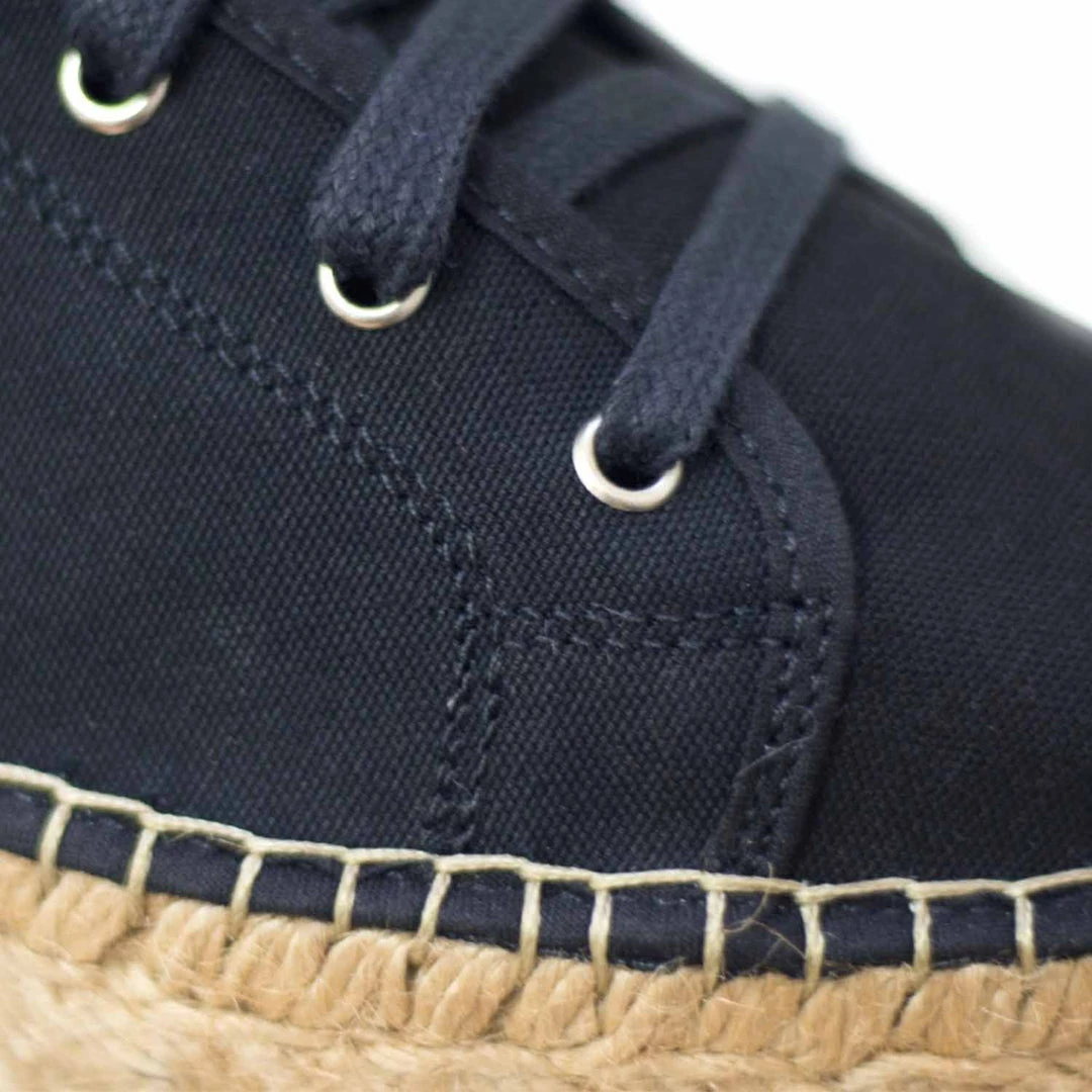 They are composed of canvas at the top and a mixed-texture platform, made with jute and rubber.