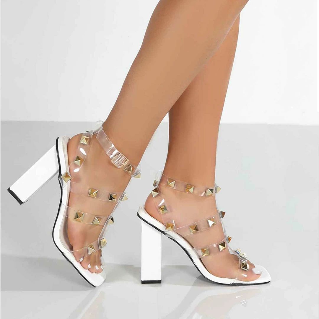 Admired features studded perspex strap detailing with a square toe block heel. Be prepared to stun in these summer essentials, match with fav outfits to add some edge to you look!