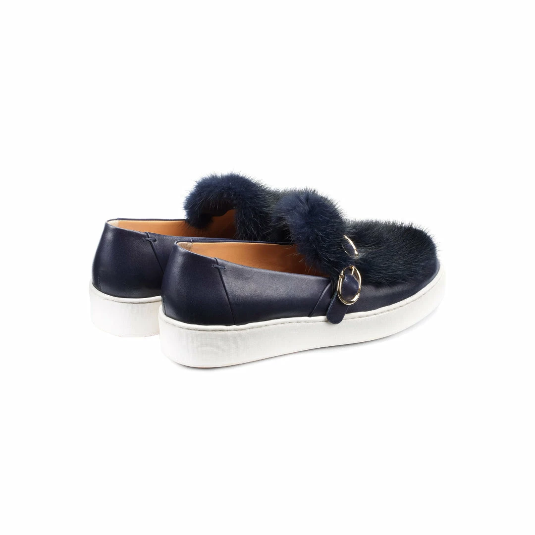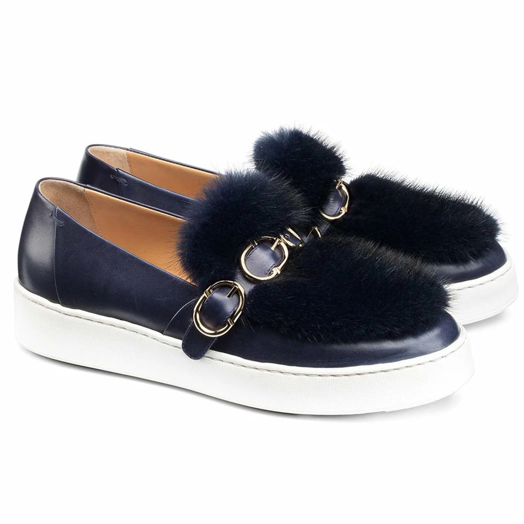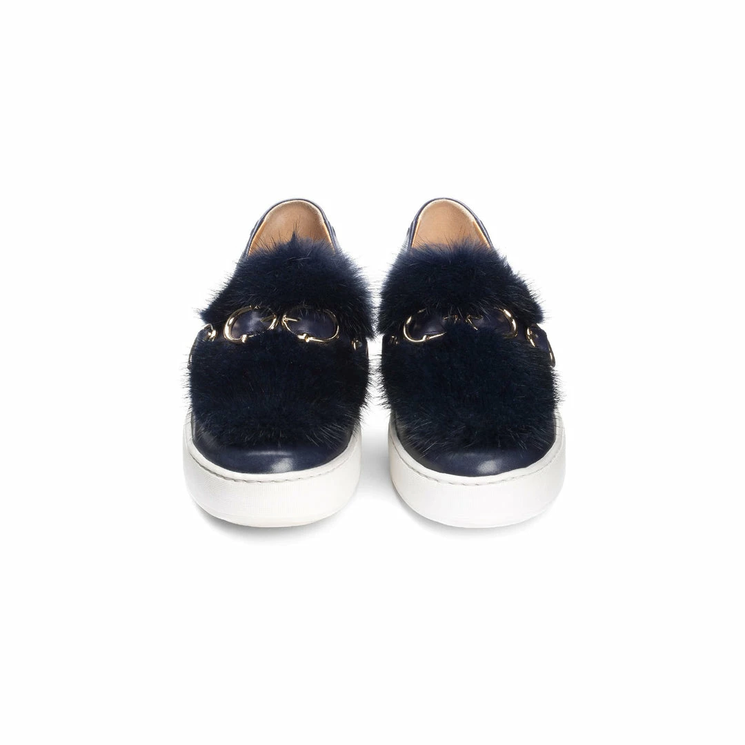 Como Store SANTONI LEATHER FUR SNEAKER NAVY Women