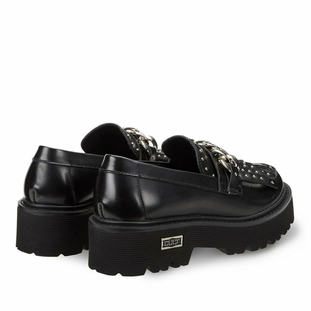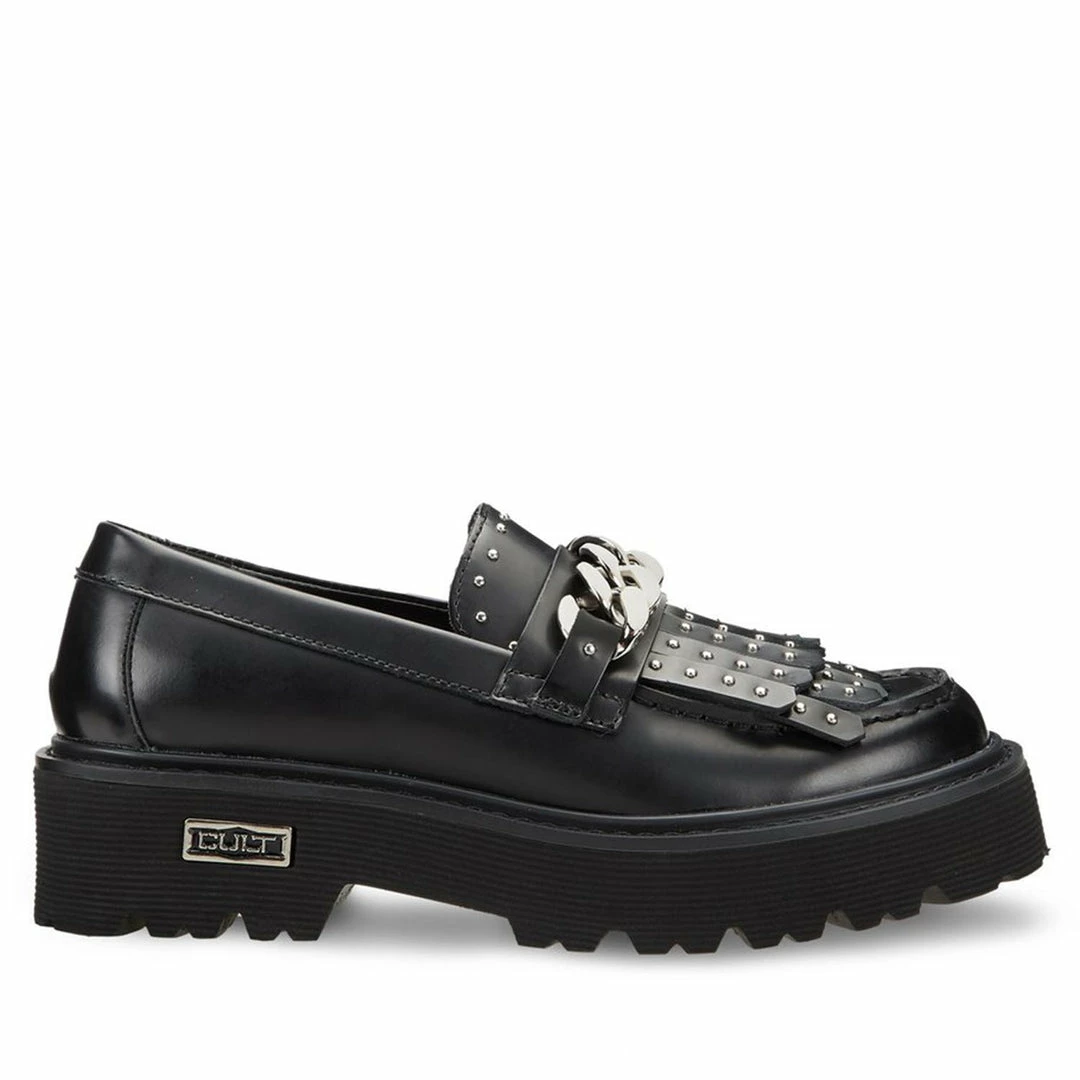 The moccasins of the Slash line signed by Cult for this winter are timeless. In brushed leather, these moccasins with a reinforced sole are a must for comfort and are made more feminine by the maxi chain and mini studs. Wear them under skirts or trousers for a rock chic look.