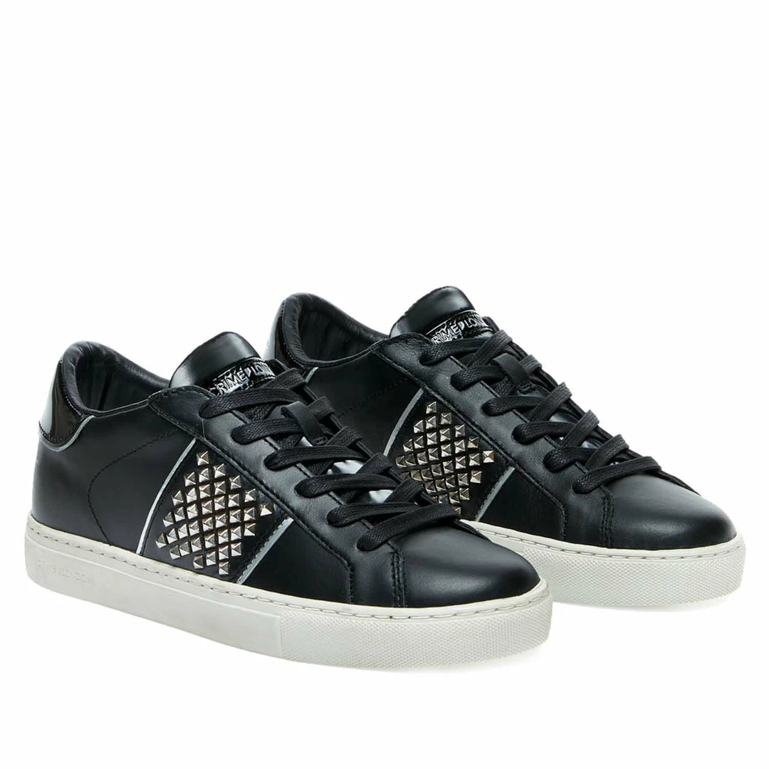 Low Top Essential Sneakers for women in Italian top quality leather. Flat cotton laces. Tongue with logo patch. Side band with metal studs. Seamed rubber sole. Color matched shiny heel. A plain and versatile design perfectly suited to any situation.