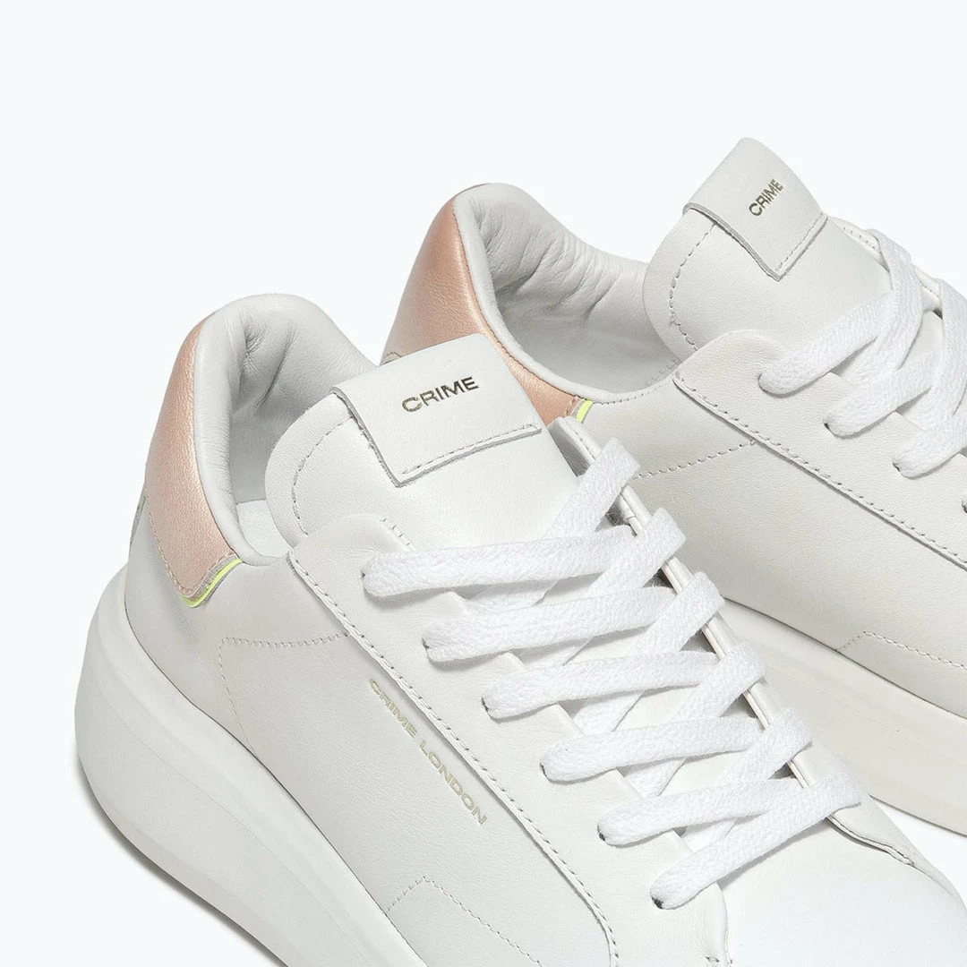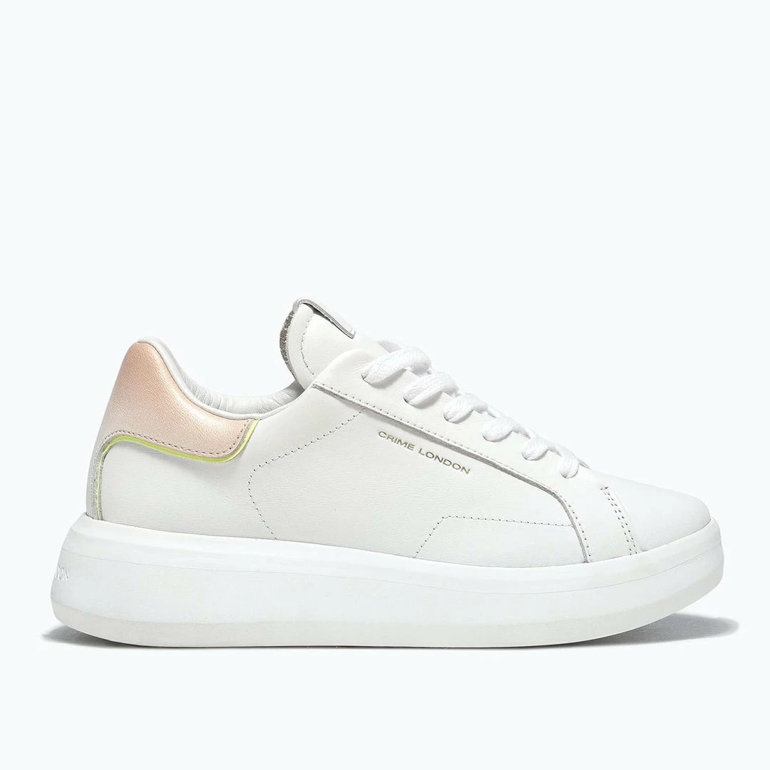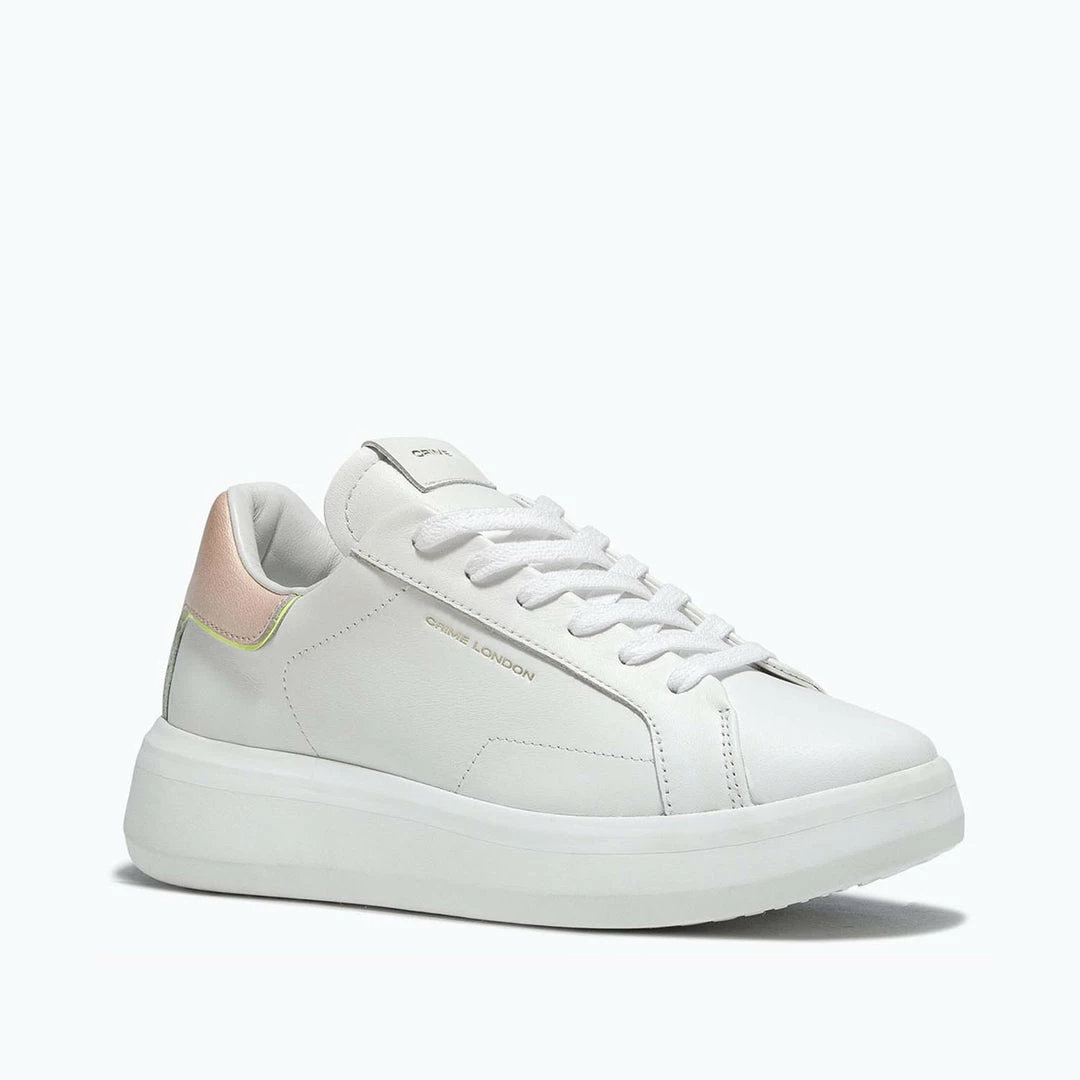 Low Top Level Up Sneakers for women in top quality Italian leather. Crime London label at the tongue. Flat cotton laces. Gradient-effect peach pink heel. The bulky sole in rubber gives a dynamic effect to the minimal look of the shoe.