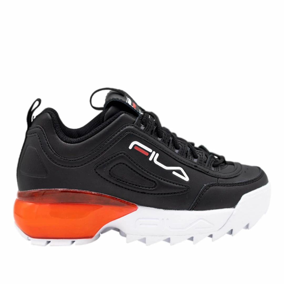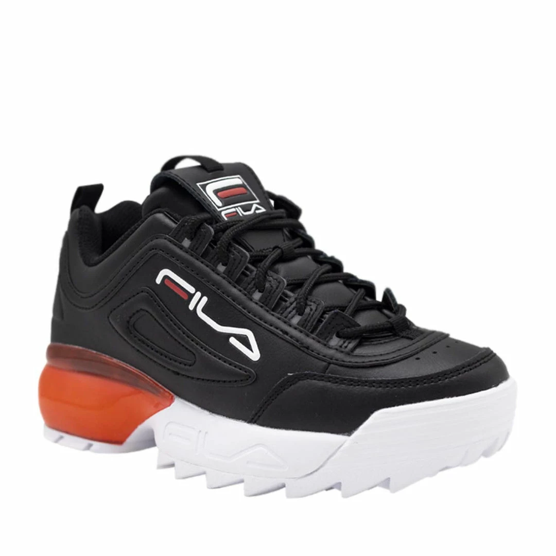 Show off your style in the Disruptor 2A faux leather athletic sneakers by Fila. Made with synthetic/textile uppers and sleek logo detailing. This classic features mixed mesh uppers for breathability, molded cushioned 2A heel and rubber outsoles.