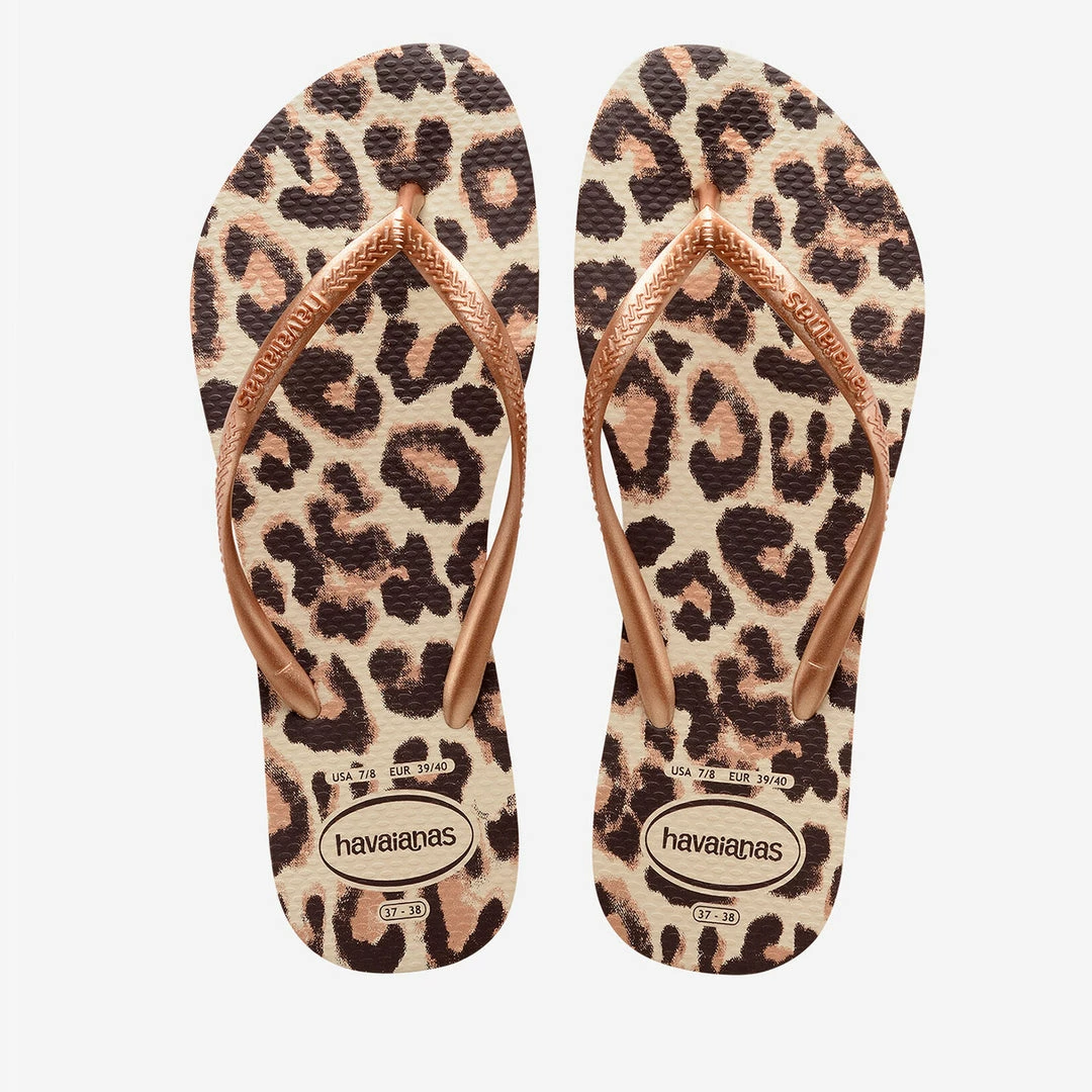 Wild adventures await in these bright flip-flops boasting an eye-catching animal print and signature textured footbed for comfort and traction.