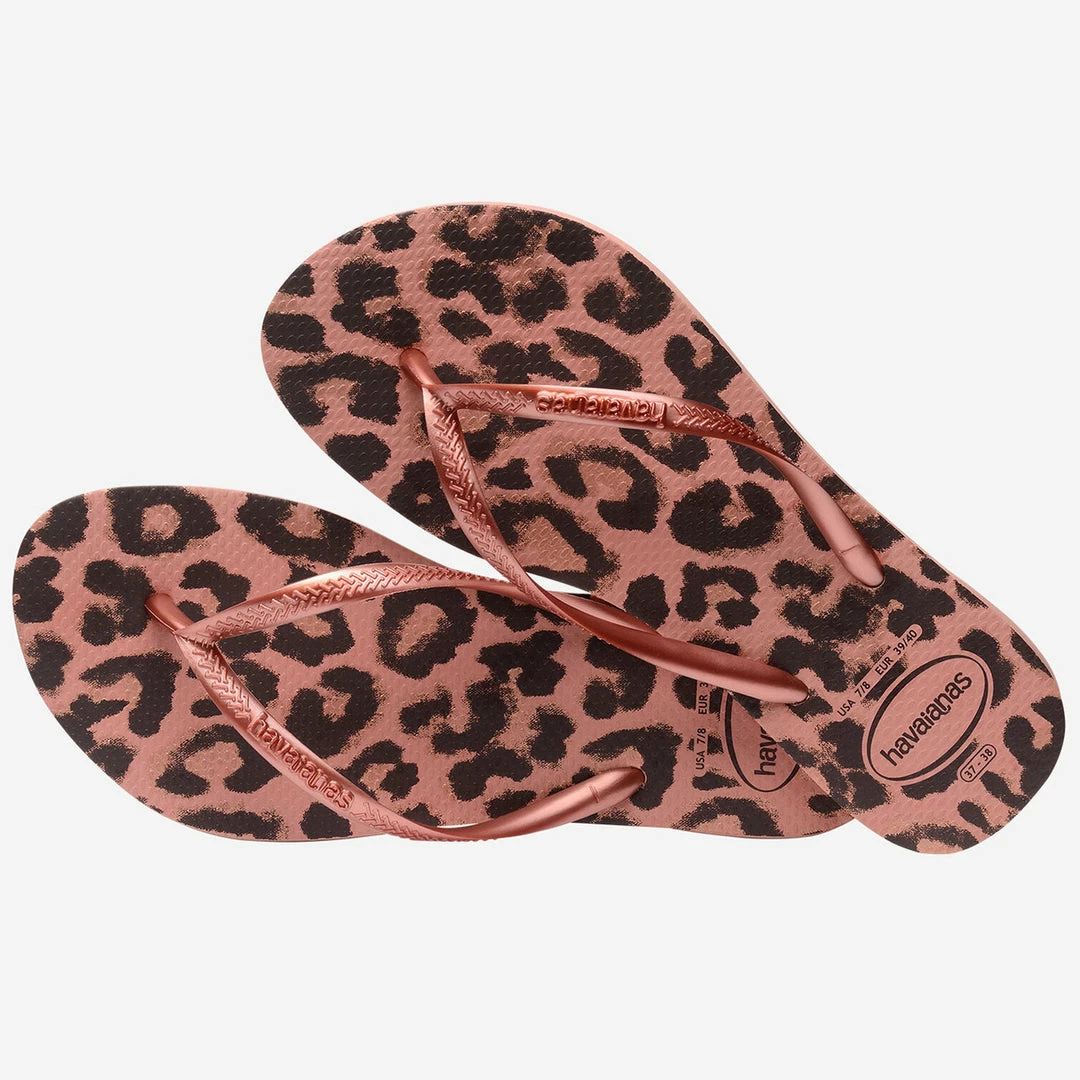 Havaianas Slim Animal Floral flip-flops is sweet on the eyes! The exuberant print on the Slim model is a knockout, and the metallic straps are the ultimate modern statement.