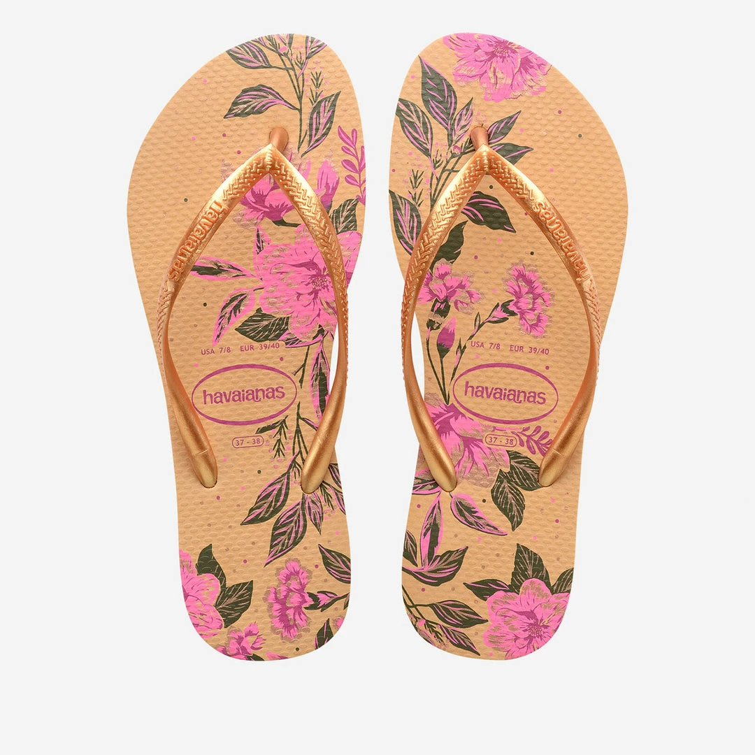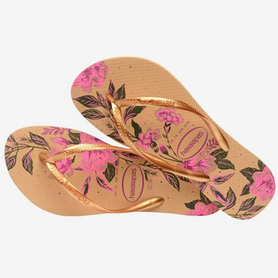 For that pretty, floral vibe, look no further than the Slim Organic flip flop. Featuring a colorful burst of blooms and a slim metallic strap, these beautiful flip flops will keep feet comfortable all day long.