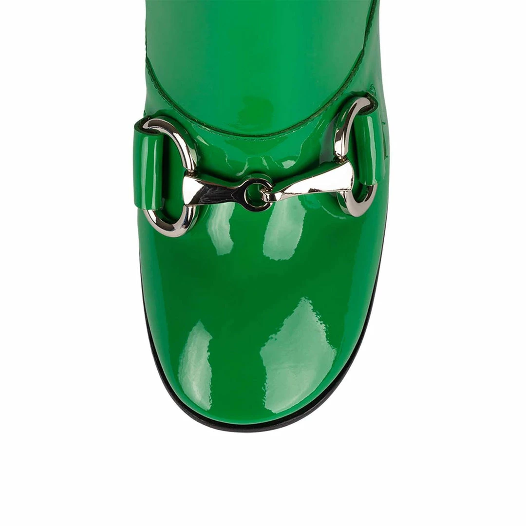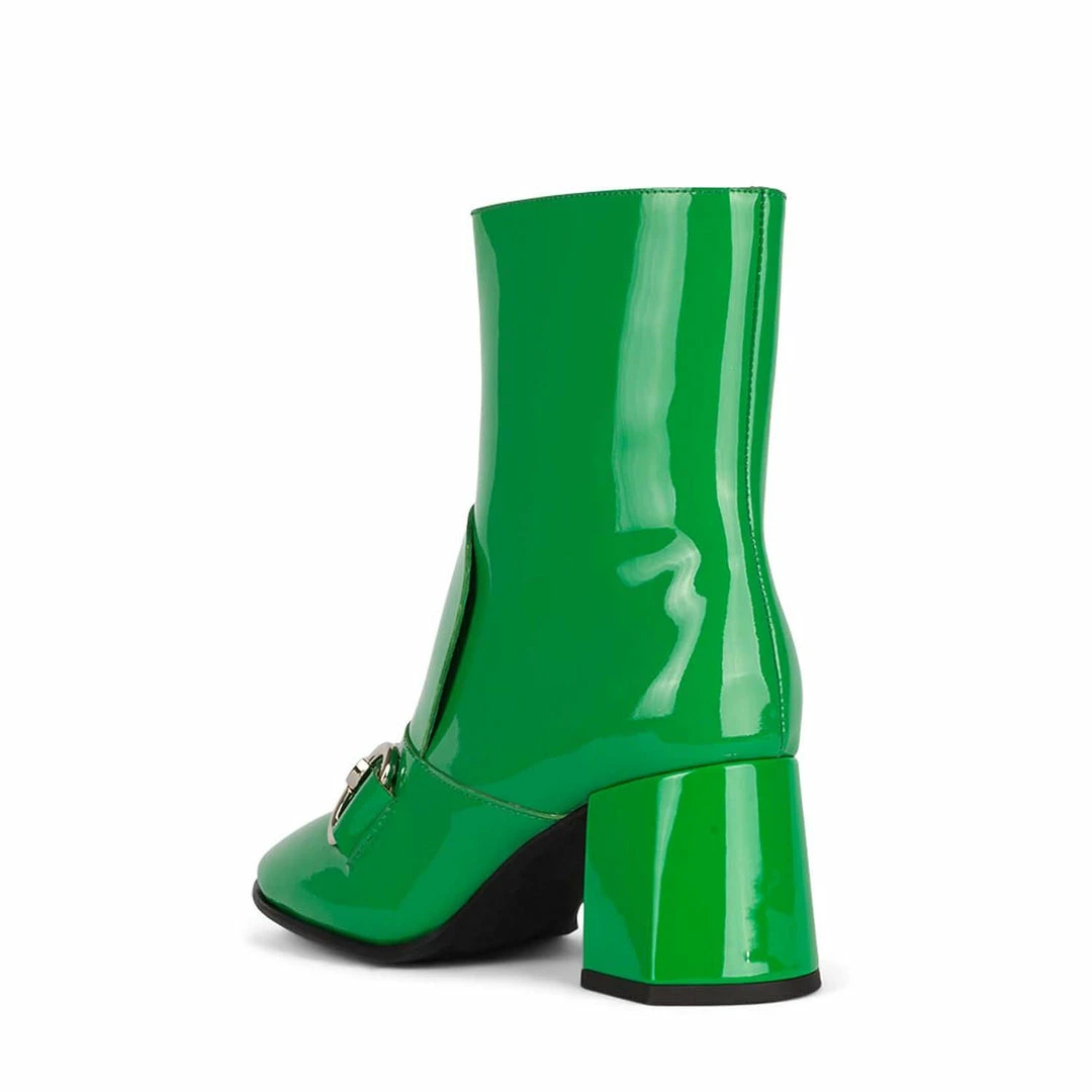Block heel ankle boot with horse-bit detail