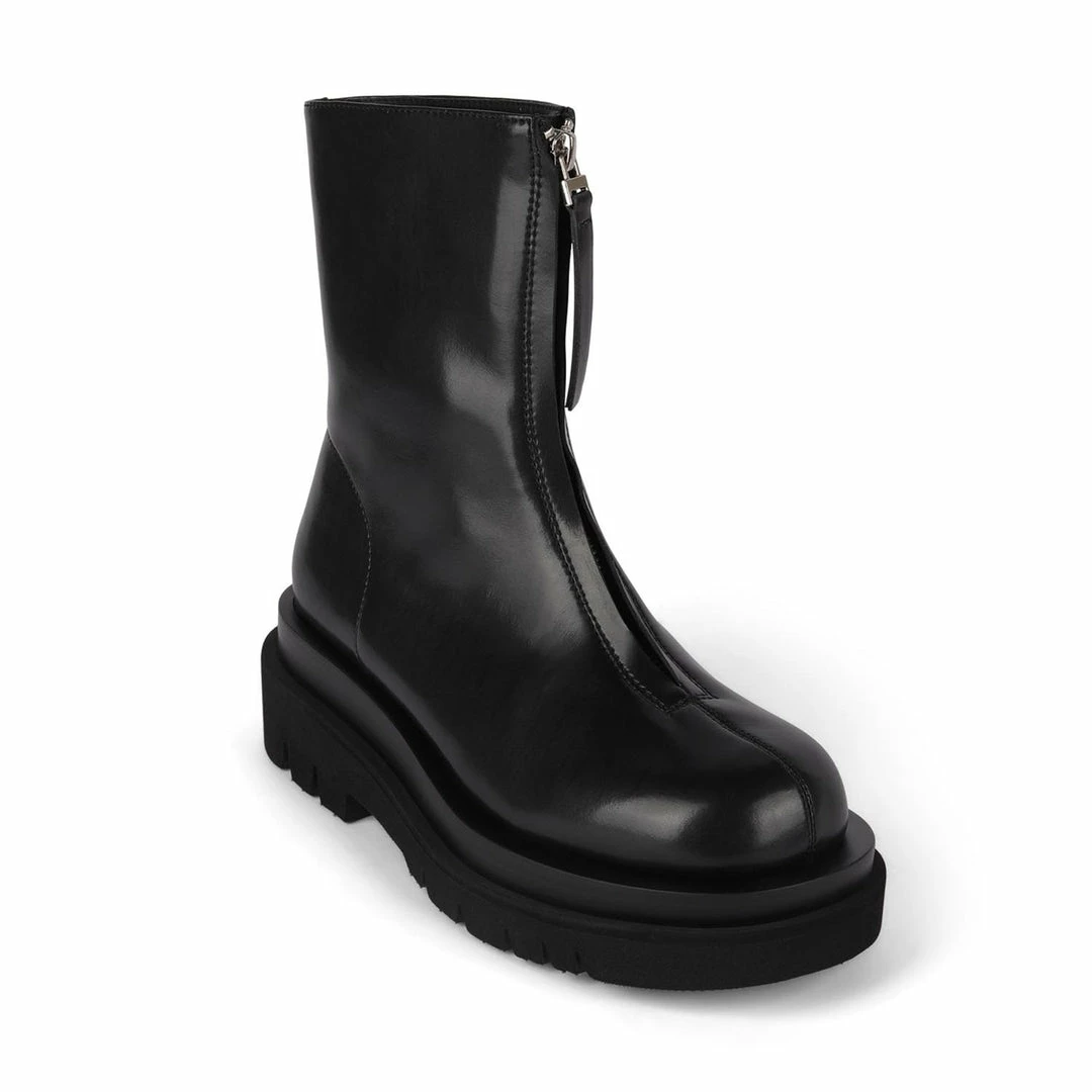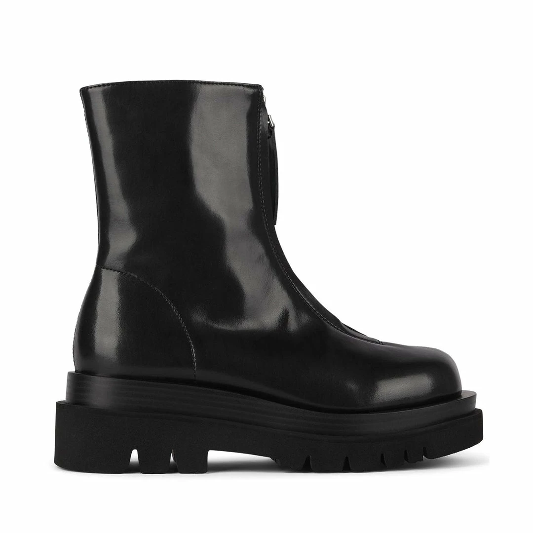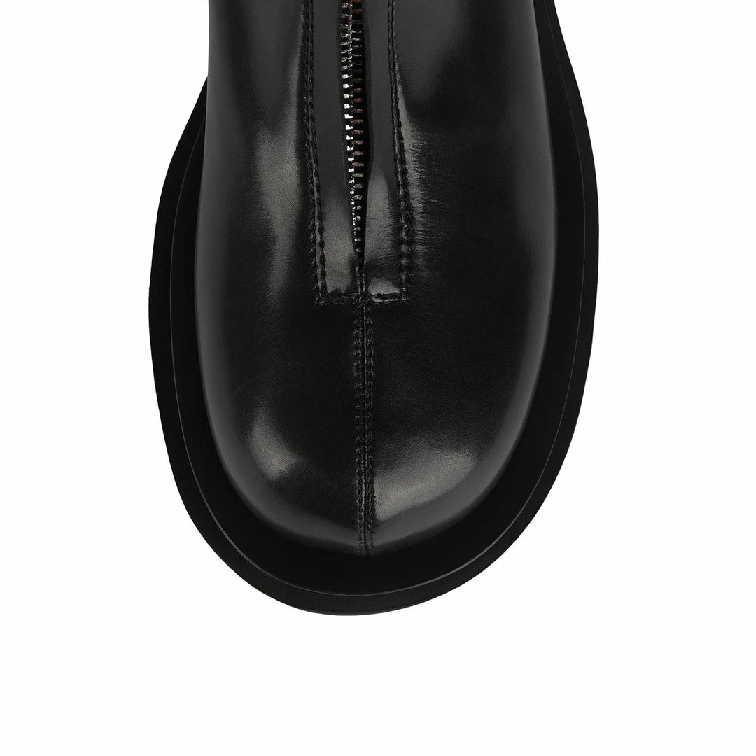 Zip-front platform boot.