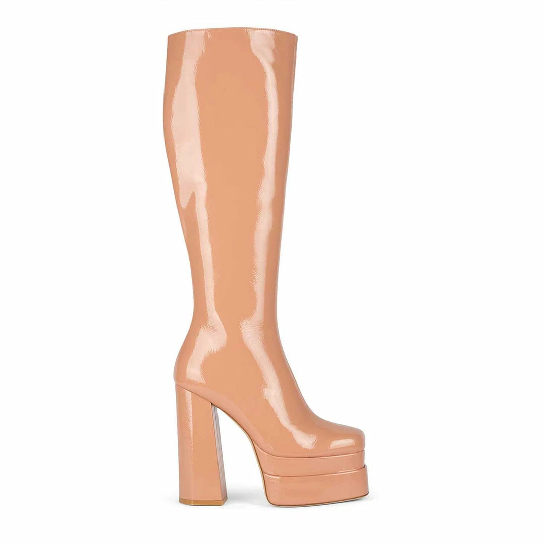 Double-stacked platform knee-high boot
