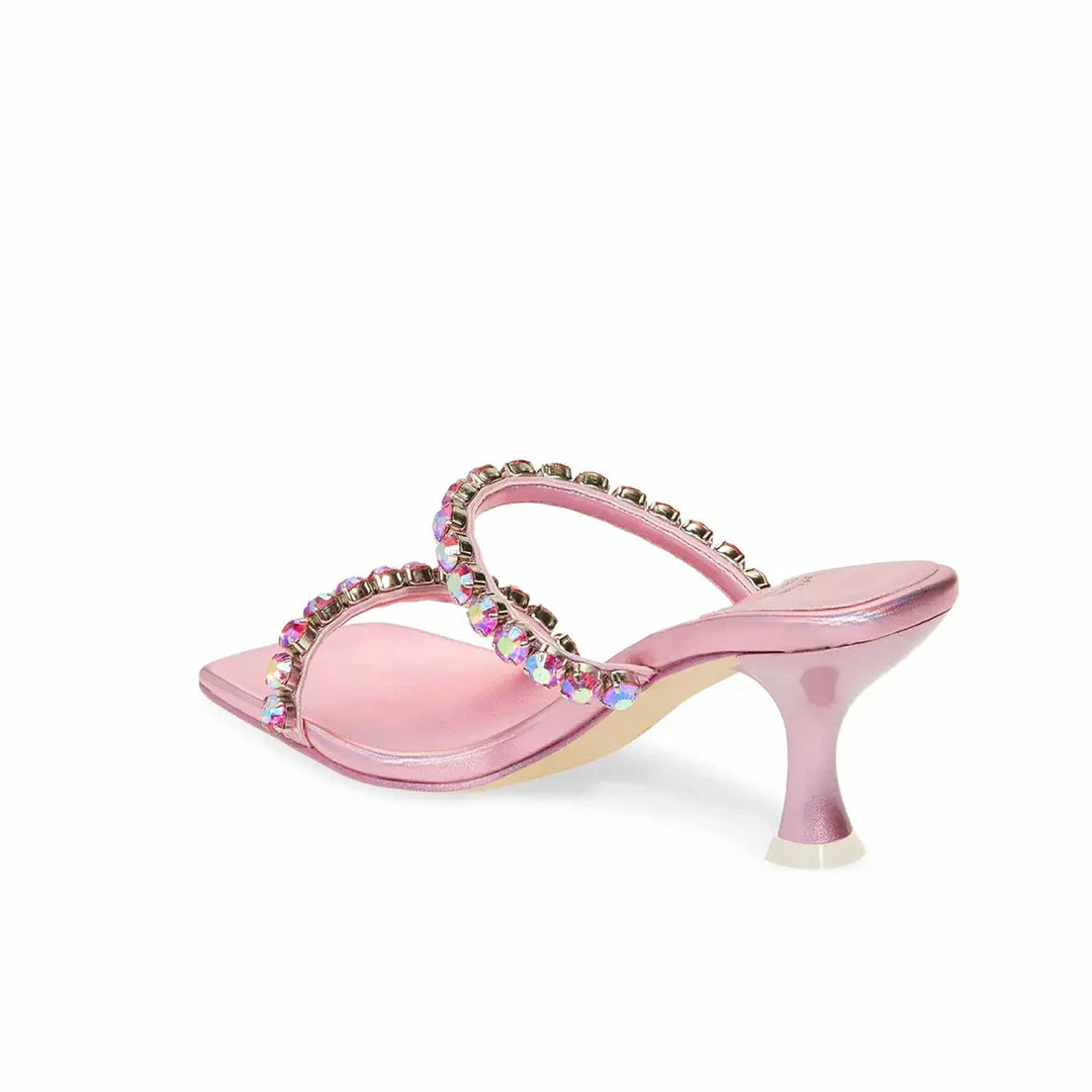 Multi-strap heeled sandal with rhinestones.
