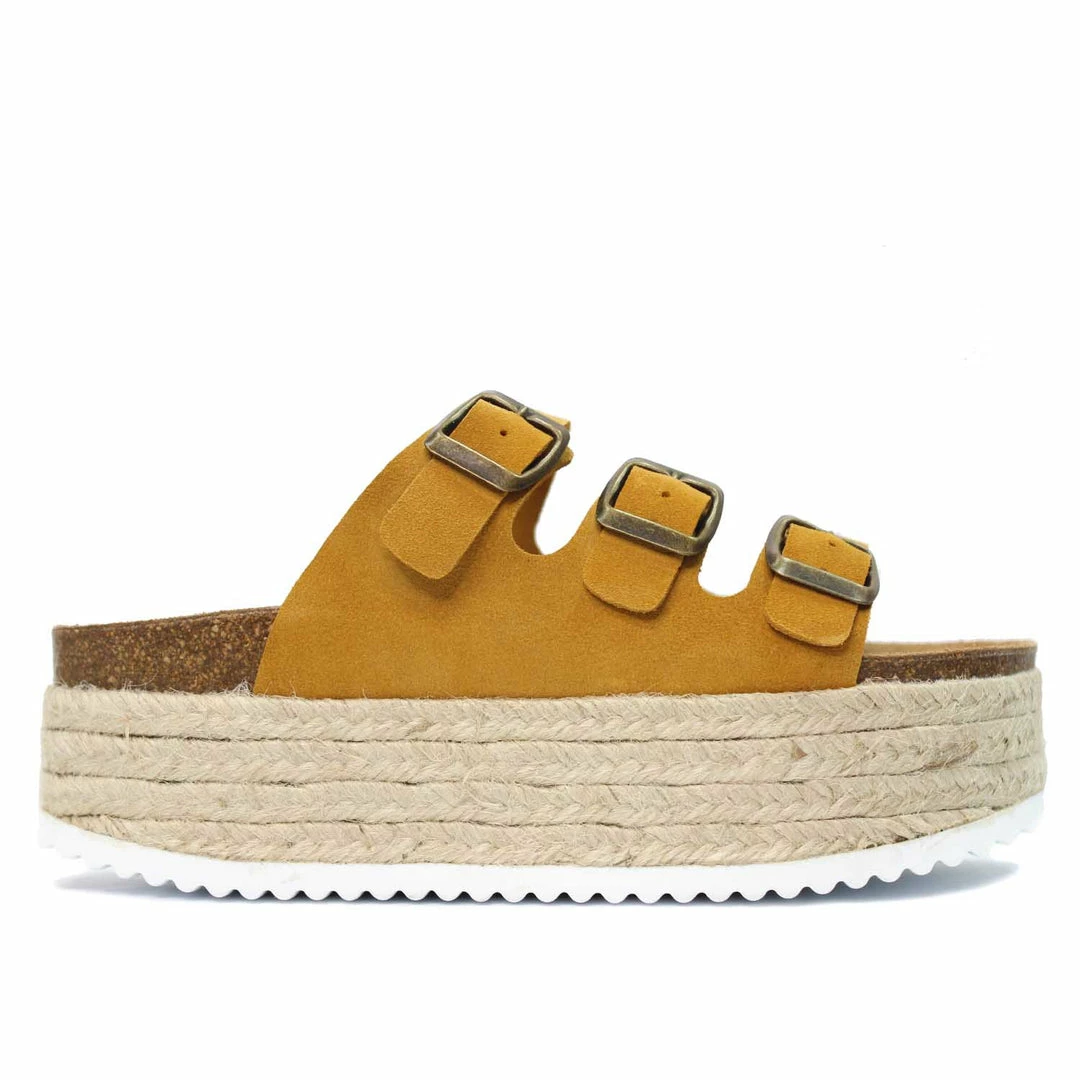 - Mustard yellow suede leather upper