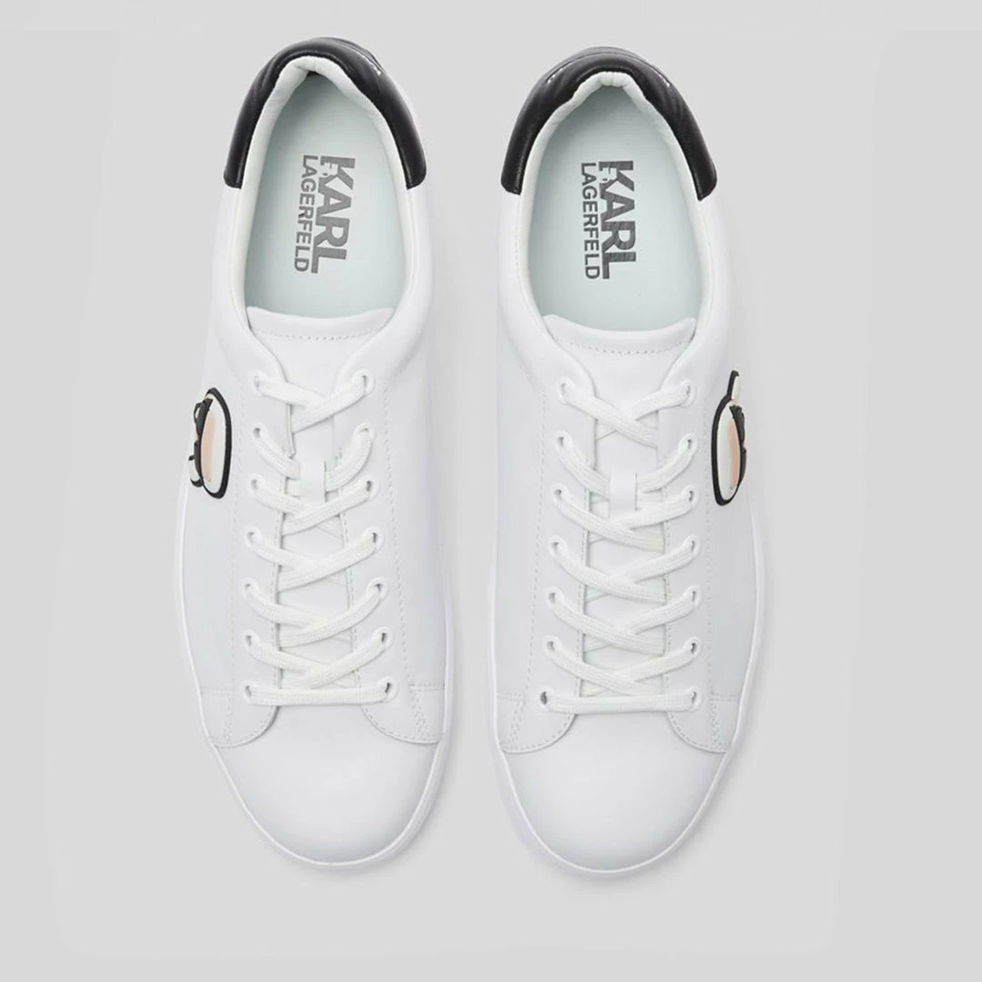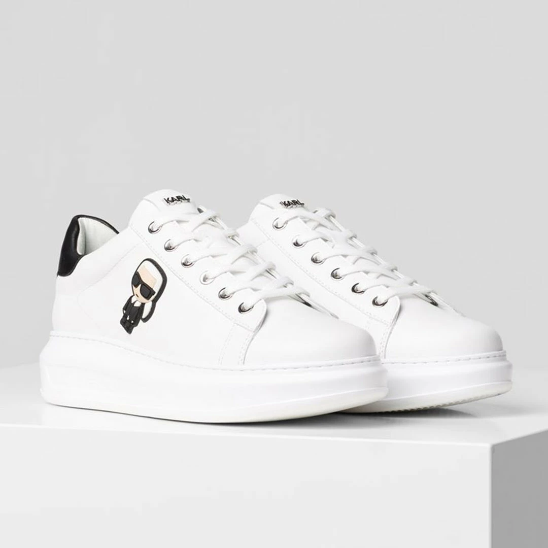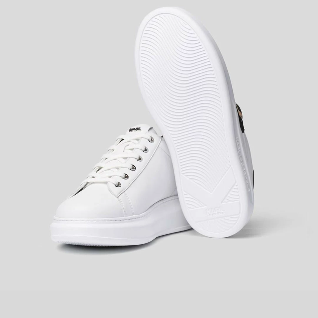 Set on a soft wedge outsole, KARL artwork turns the modern cupsole trainer into a statement piece.
