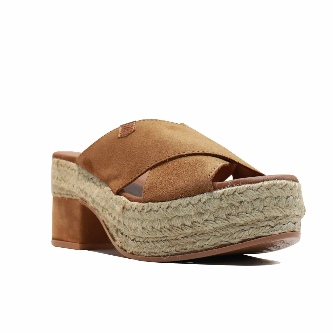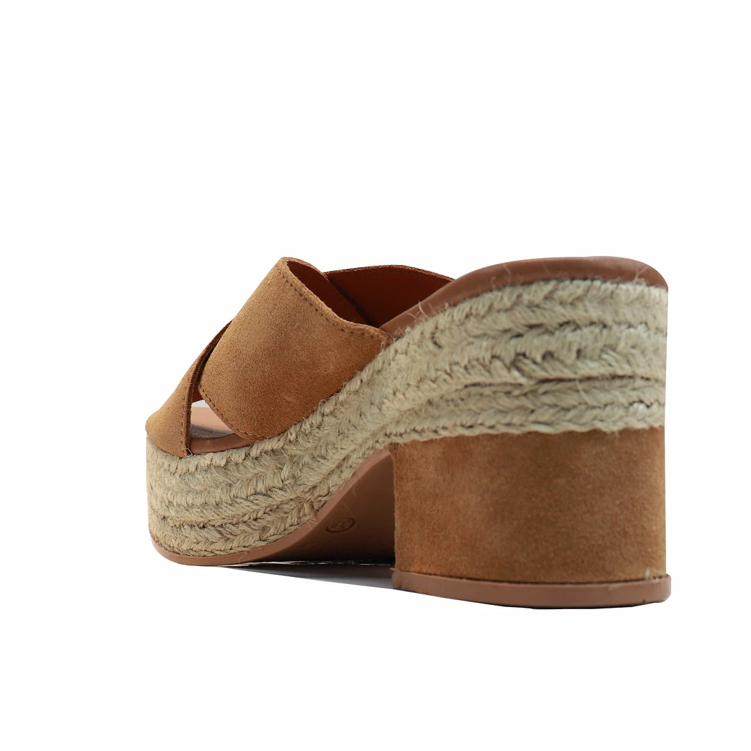 - Arenosa open clogs. Ultra-comfortable, elegant, eye-catching footwear that also has a very special vibe. Its wedge mixes jute material with suede to the tone of its front part or front curve. Padded inner sole. Rubber outsole. Height of 9.5 cm. round toe