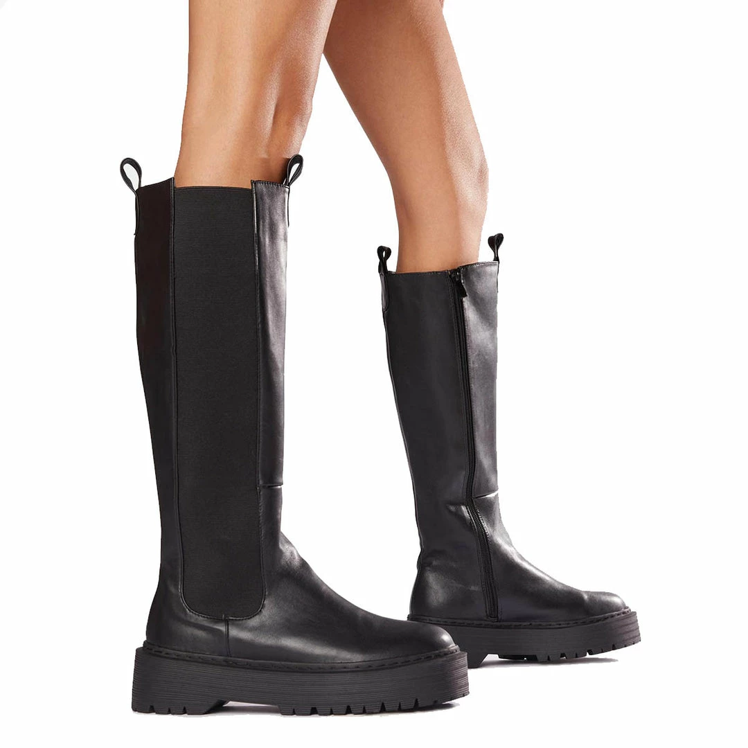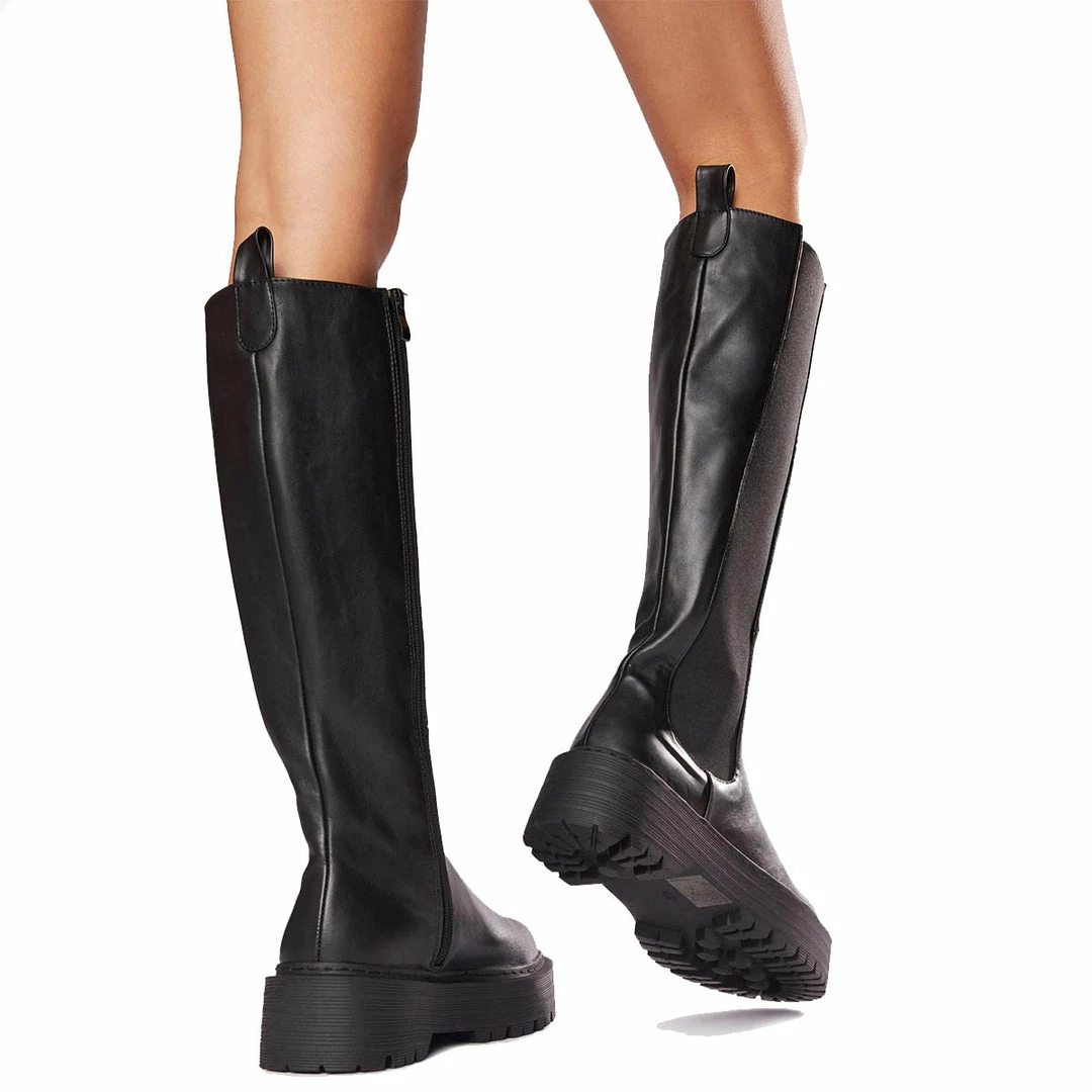 Andi features a chunky sole and a size zip. These knee high boots are your new winter boot.Â