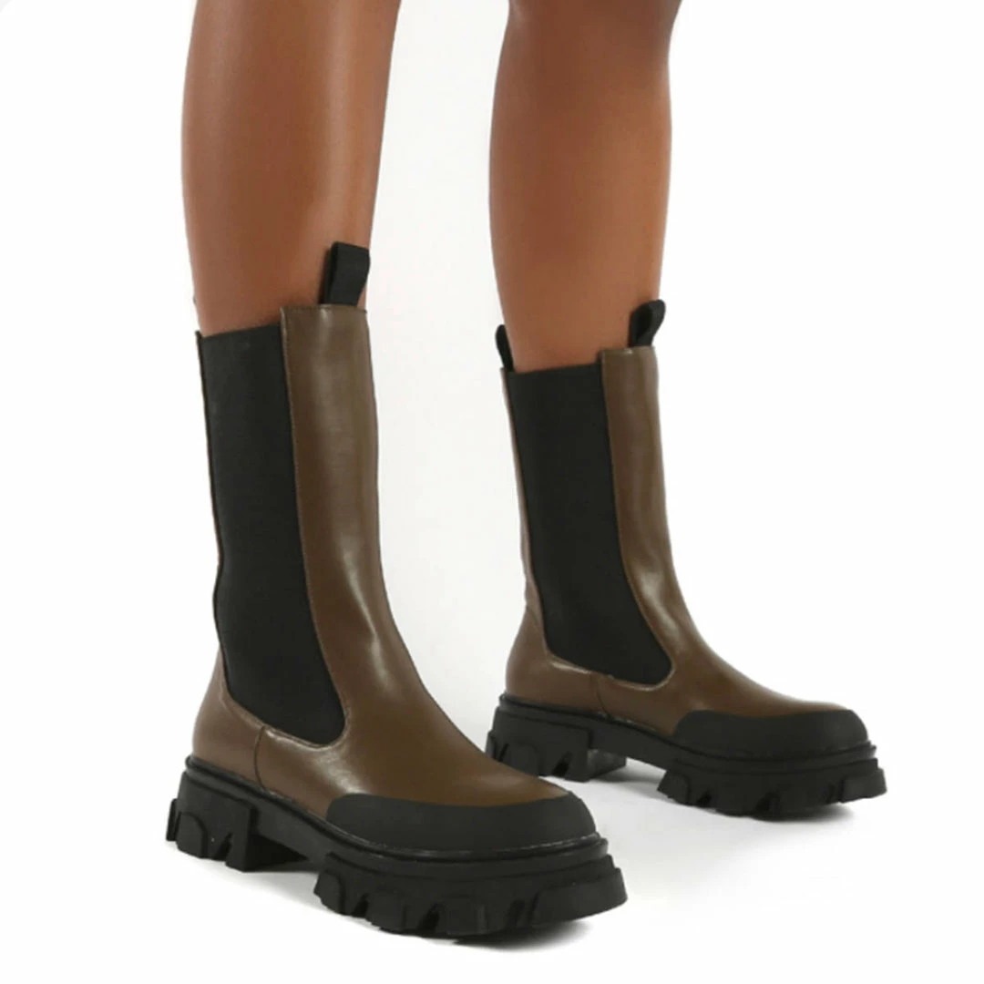 Boston features a chunky sole, side panel detailing and a calf high length. Team these with your outfit of the day to complete the look.