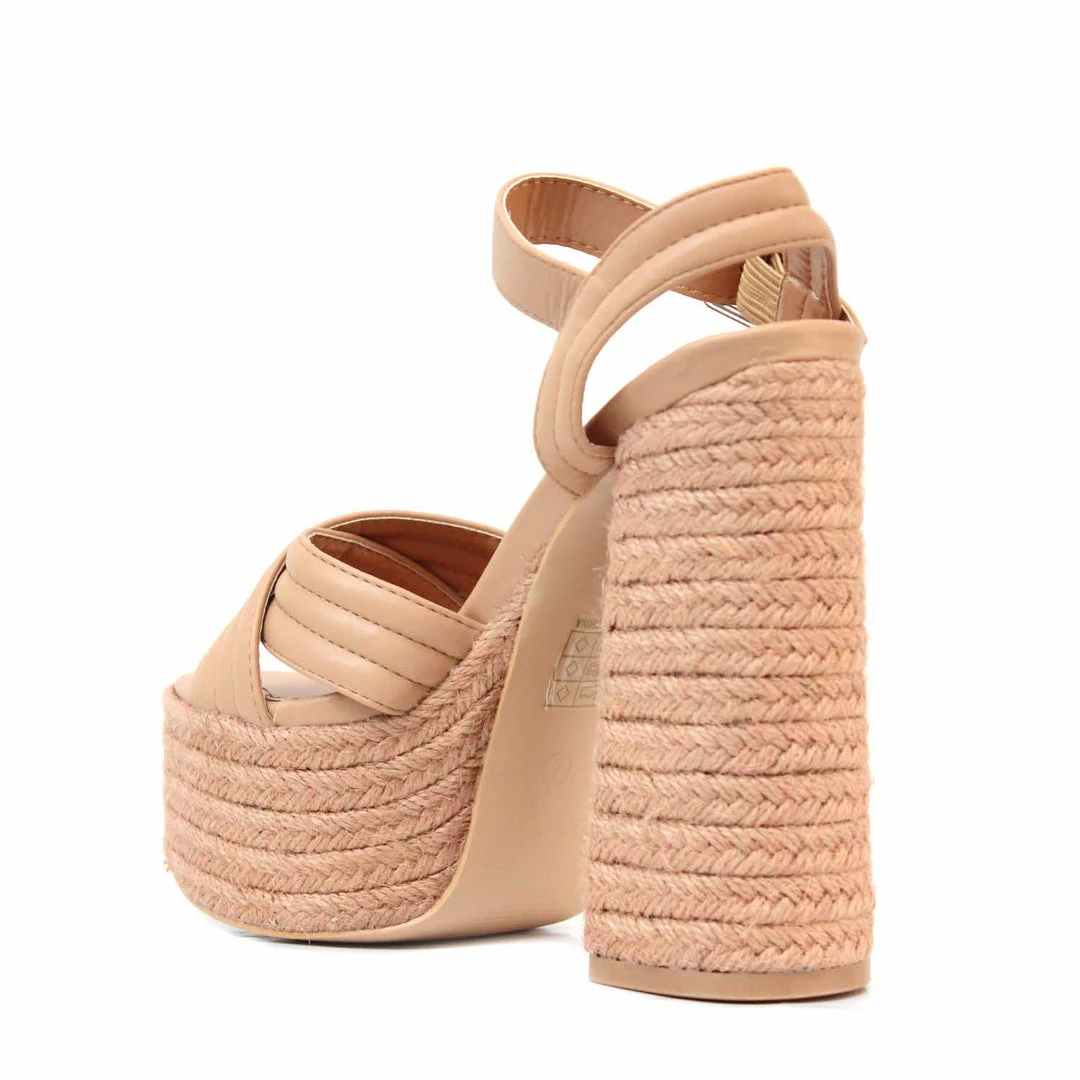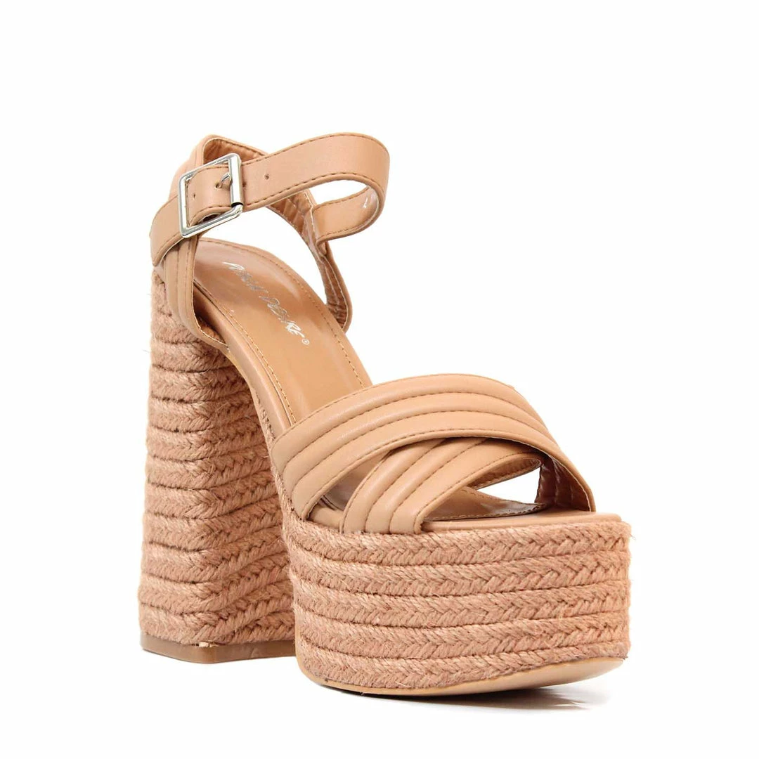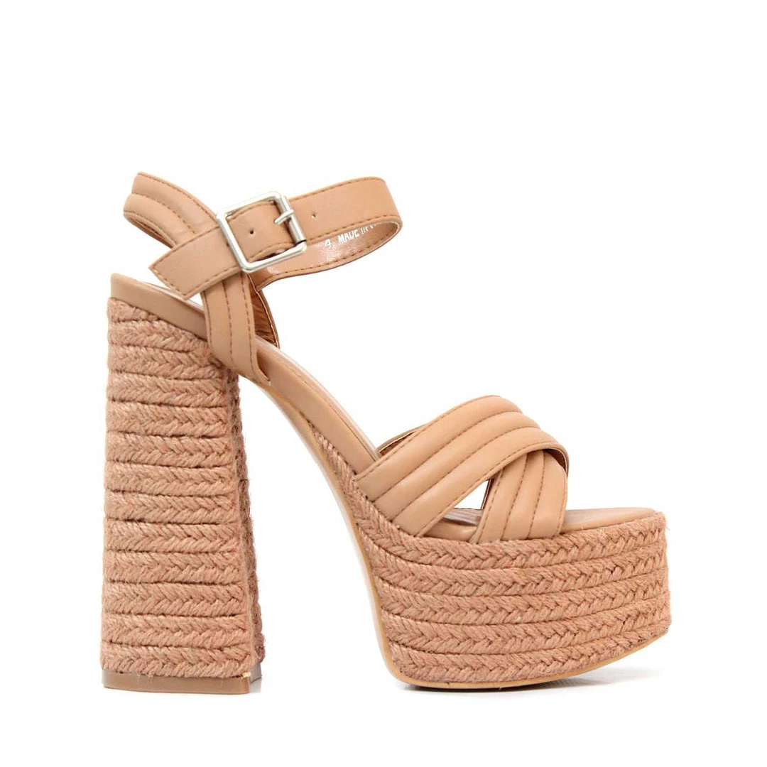 PUBLIC DESIRE HEART STOPS BEIGE PU PLATFORM SANDALS