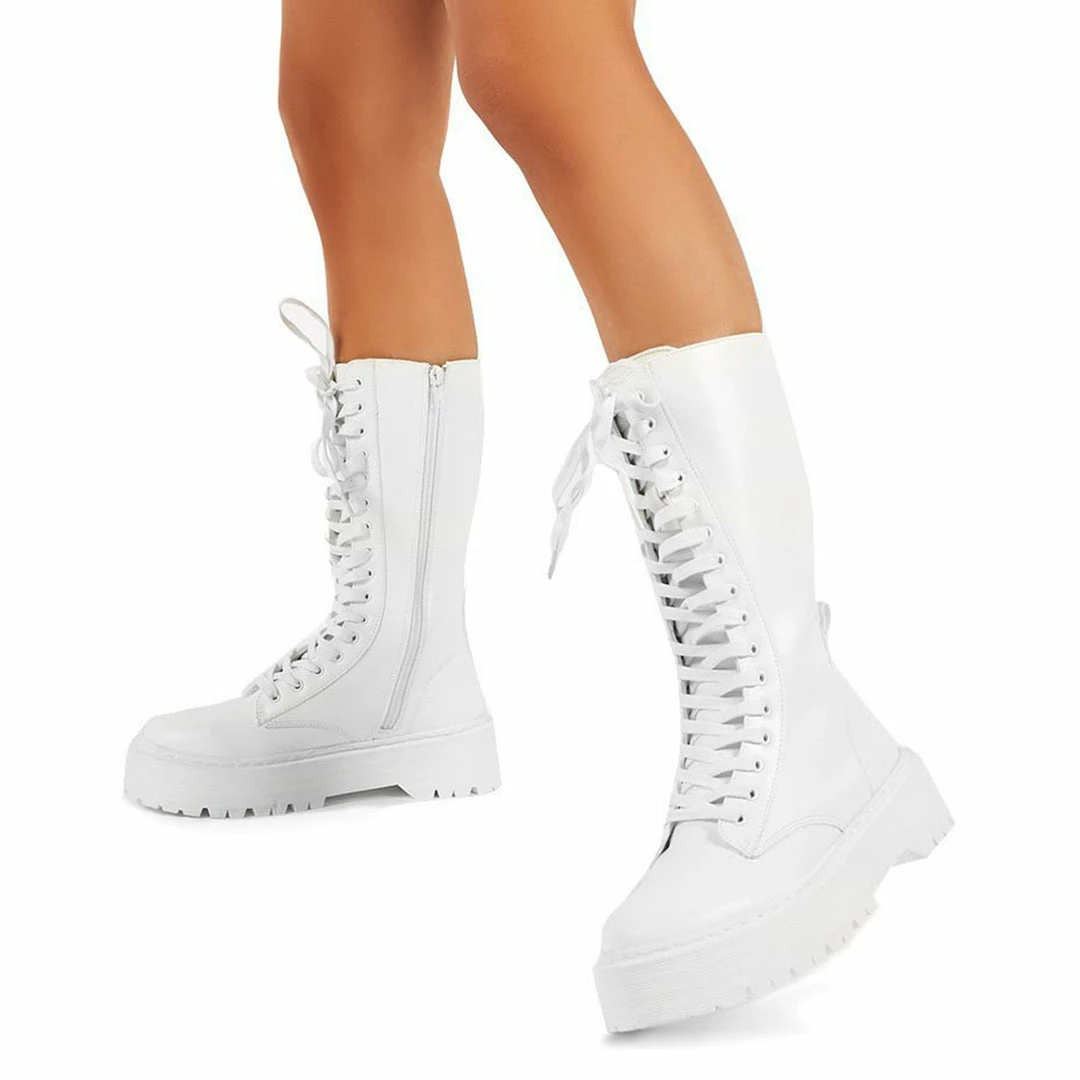 Get the trend everybody is talking about. Kendall features a chunky flat sole and knee high lace up details.